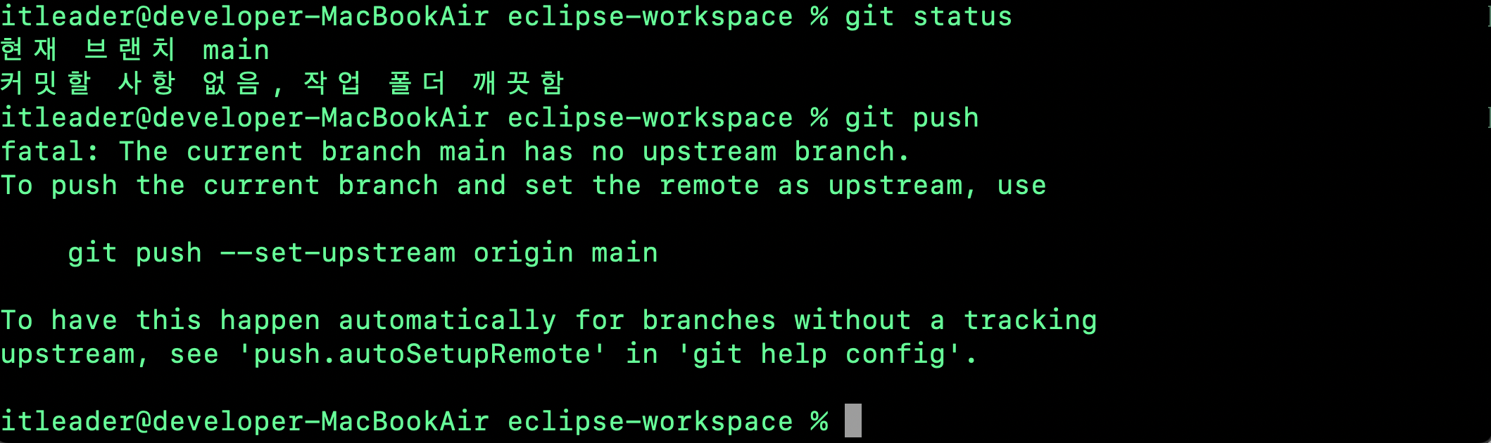 현재 브랜치 main에는 커밋할 사항이 없다고