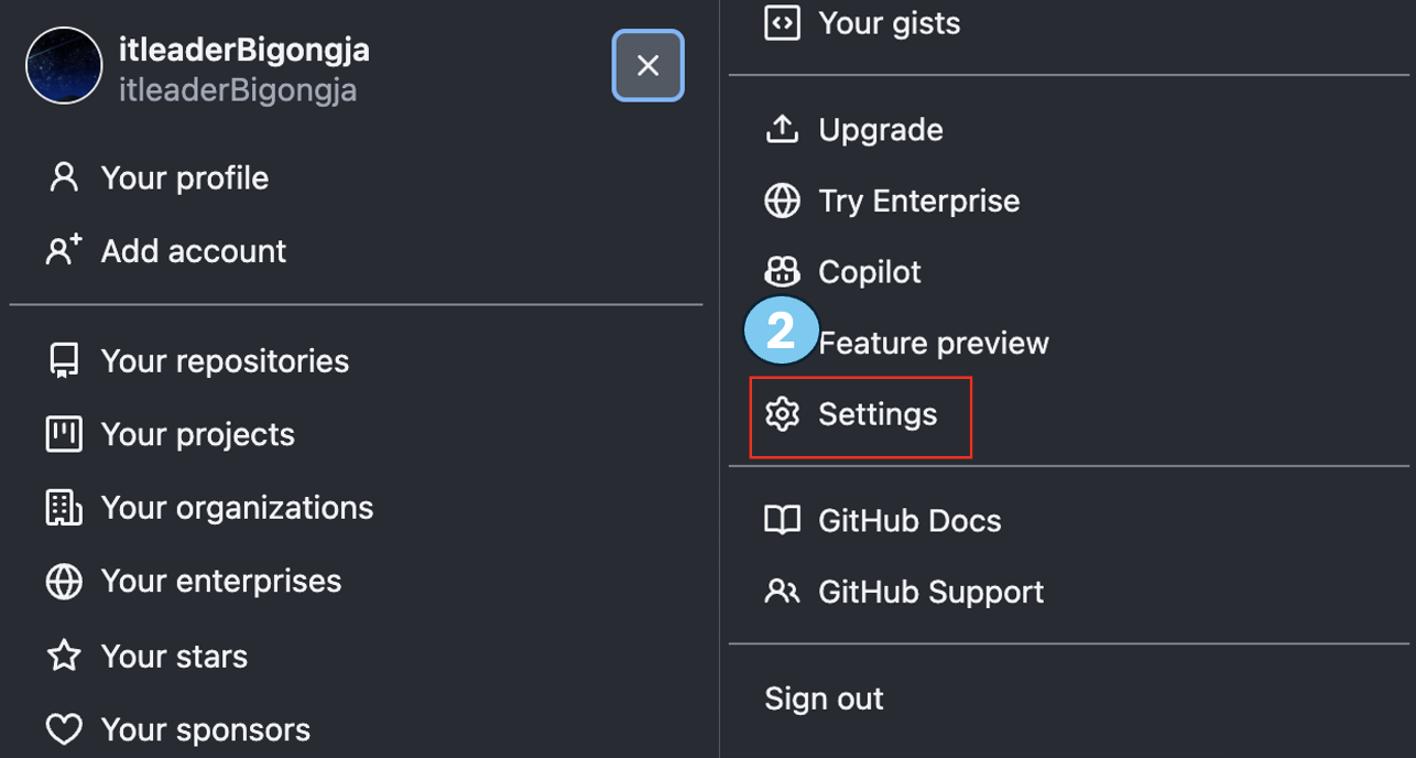Git 유저이름은 GitHub에 가시면 떡하니 이름이 있습니다.