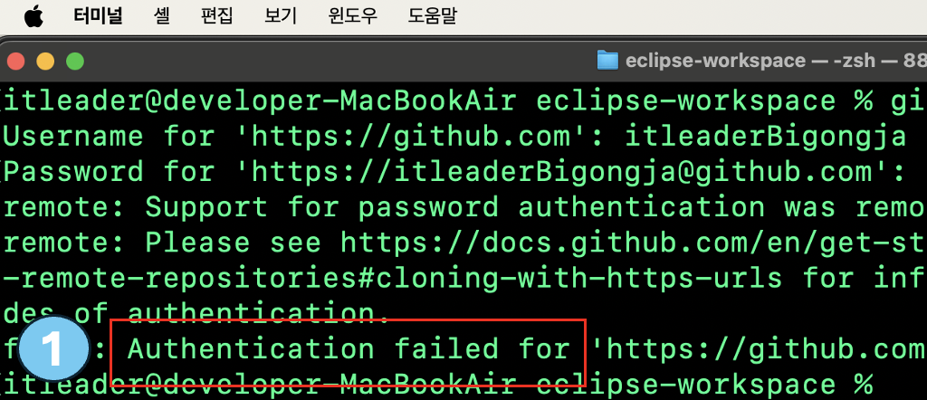 패스워드는 GitHub의 패스워드를 입력해 주시면 됩니다.